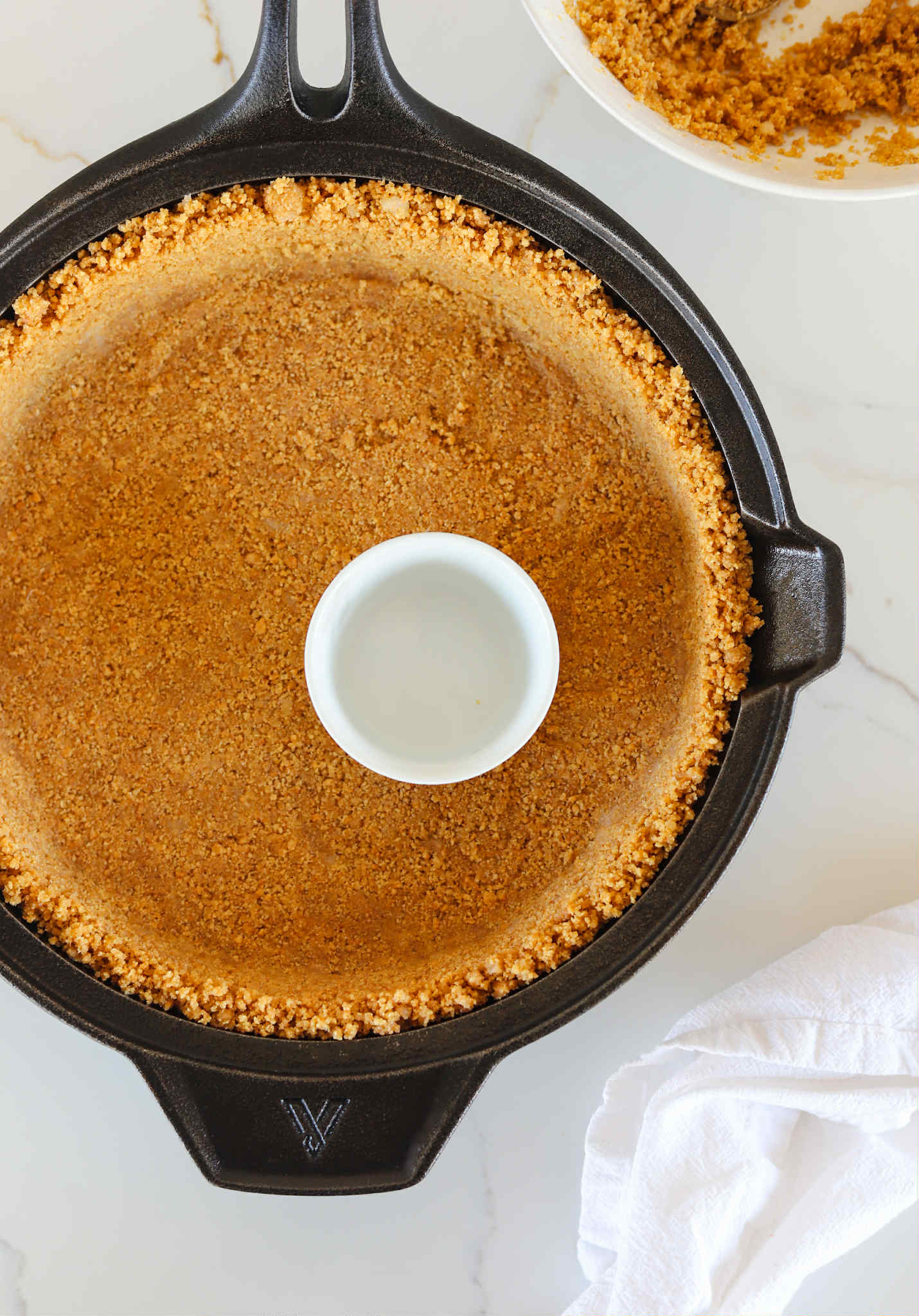 0 Preheat your oven to 350 degrees 1 Use a food processor to grind the graham crackers down to a fine crumb 2 In a large bowl, mix 1/3 cup of granulated sugar, 1/2 cup of melted butter and a pinch of your favorite warm spice in with the graham cracker crumbs until everything is evenly distributed 3 Transfer the mixture into a lightly greased pie pan, springform pan or cast iron skillet and press out evenly throughout the bottom and sides of the vessel keeping the sides as thick as the bottom 4 Your options for prepping this crust are...- Pre-bake the crust for 9 minutes in a 350 degree oven and let cool before adding the filling.- Adding the filling and baking them together.- Chilling the crust for 30 minutes in a refrigerator or freezer before adding no-bake filling.View original recipe