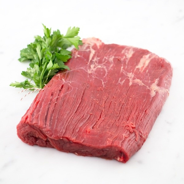 A beautifully seasoned flank steal served with a spicy, herby chimichurri sauce.