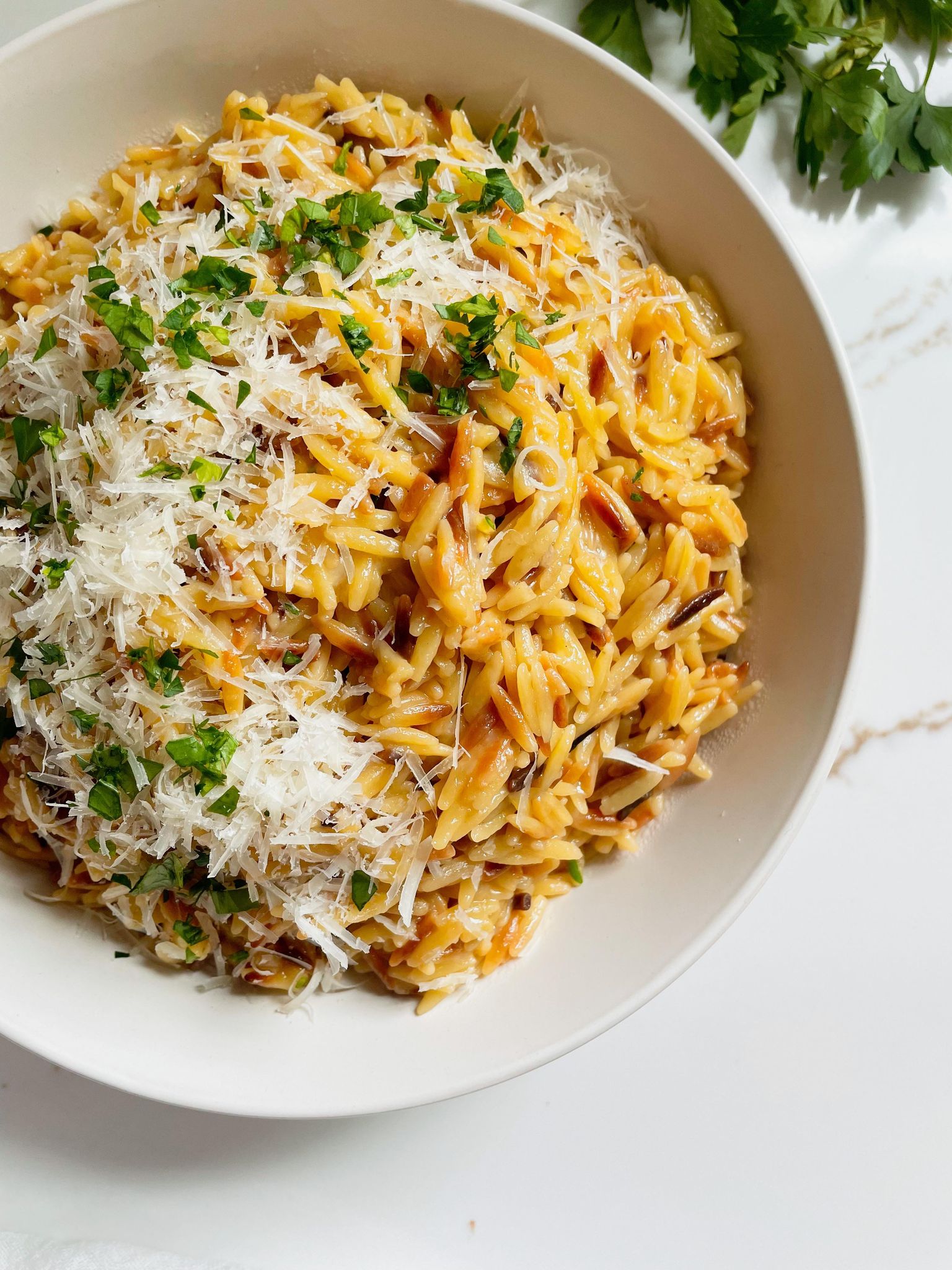 Orzo toasted in butter and tossed with salty parmesan... sheer perfection.